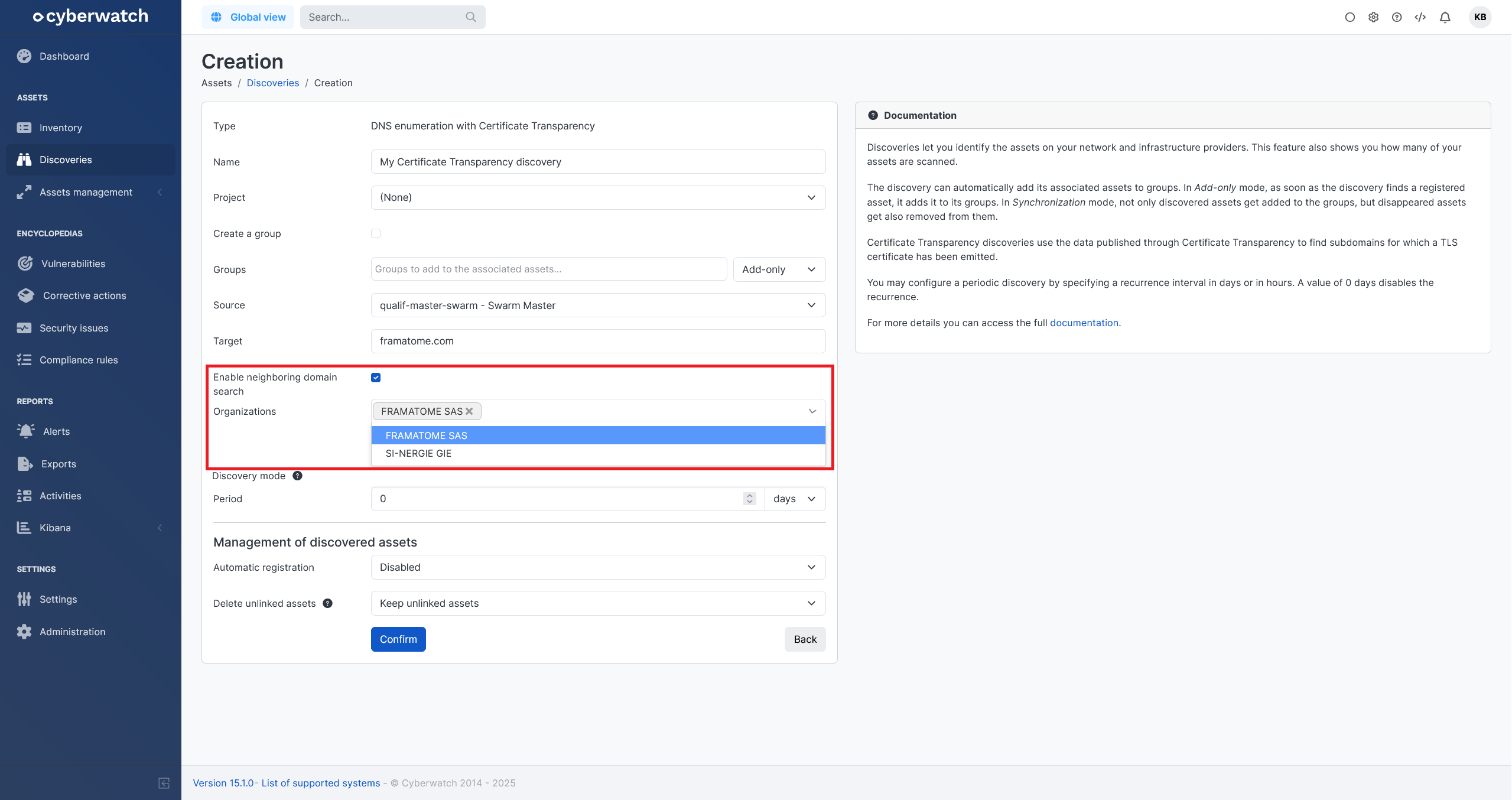 - Discoveries: Certificate Transparency discovery now offers a new option to search for neighboring organizations (preview)