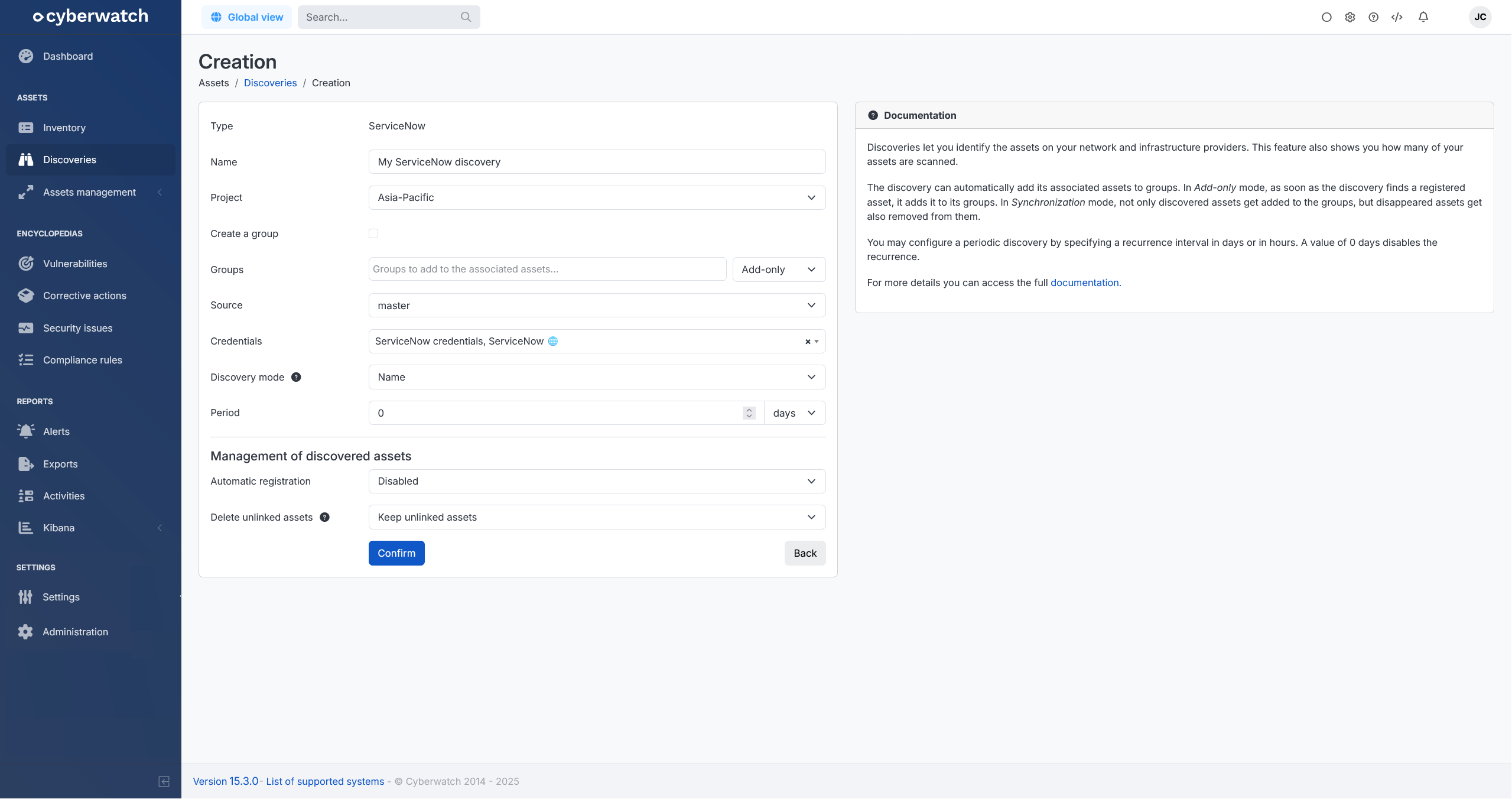 - The discovery creation view for managing discovered assets has been refactored