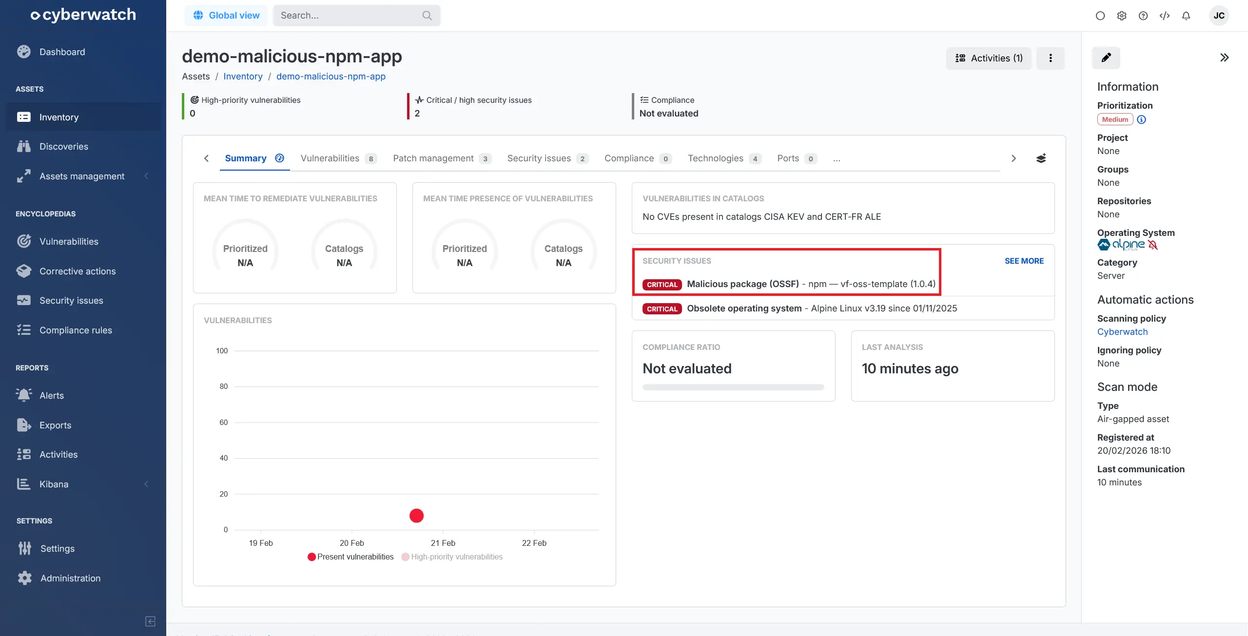 - Docker images: Cyberwatch now allows you to scan images natively with the 5.20 version of the orchestrator base