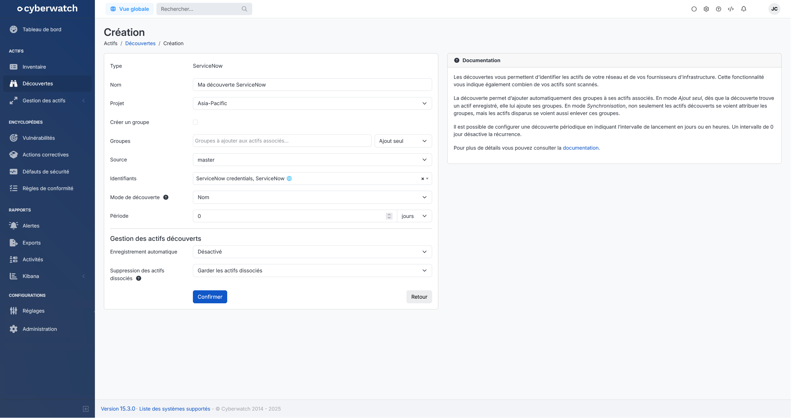 - Découvertes : ajout d’une découverte ServiceNow (aperçu)